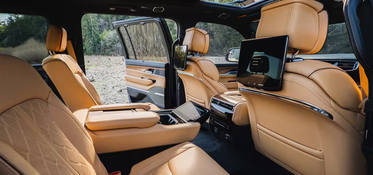 Step inside and the Grand Wagoneer delivers a true premium cabin built for daily comfort and long-haul luxury. The three-row layout provides room to stretch out, plus the upscale materials and finishes you expect from a top-tier SUV.